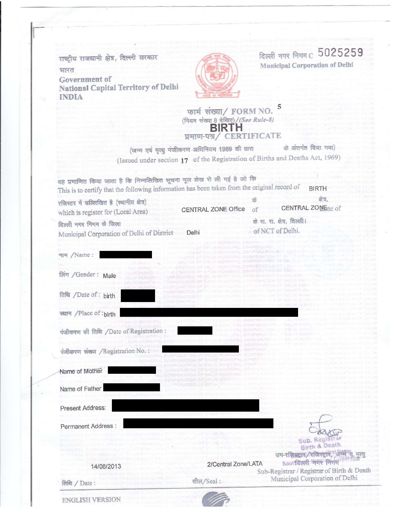 Birth Certificate In Delhi