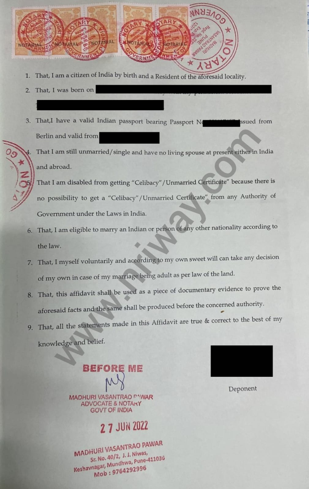 • Affidavit Format (Provided by us)